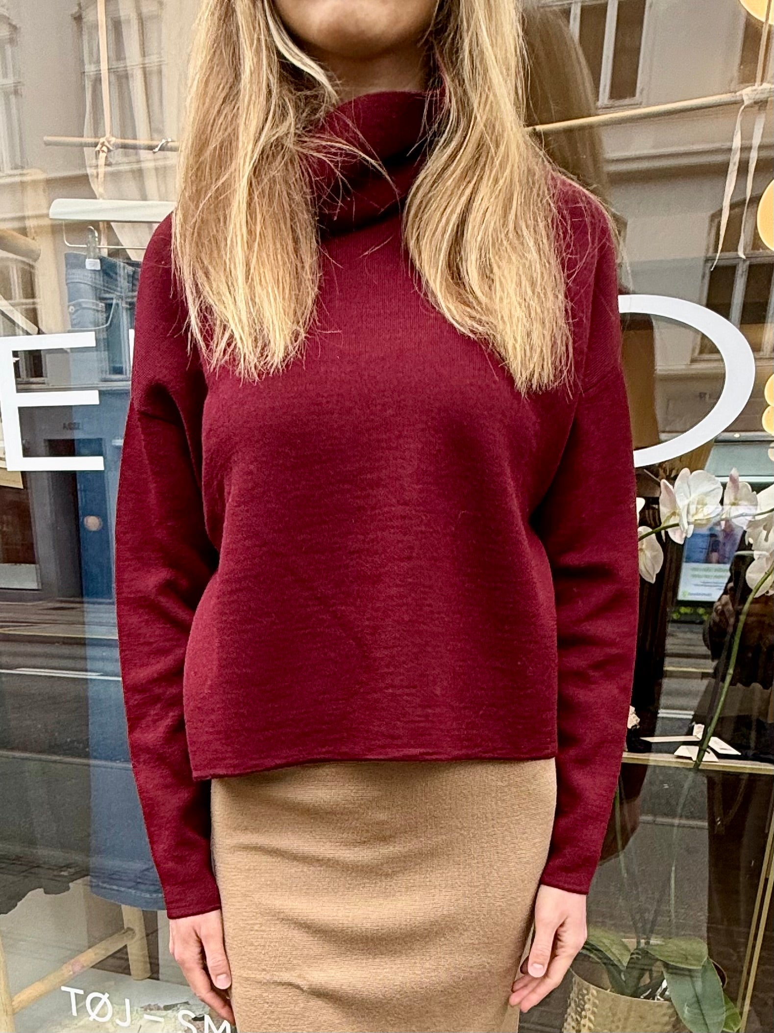 Nederdel i pencil shape i farven Camel fra Sibin Linnebjerg. Den er i 100% fine merino wool. Den er fin i str. Francisca har på billederne en str. s på.